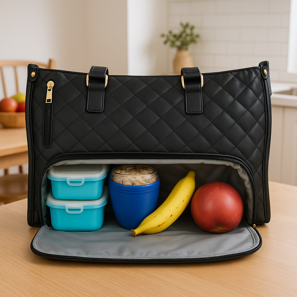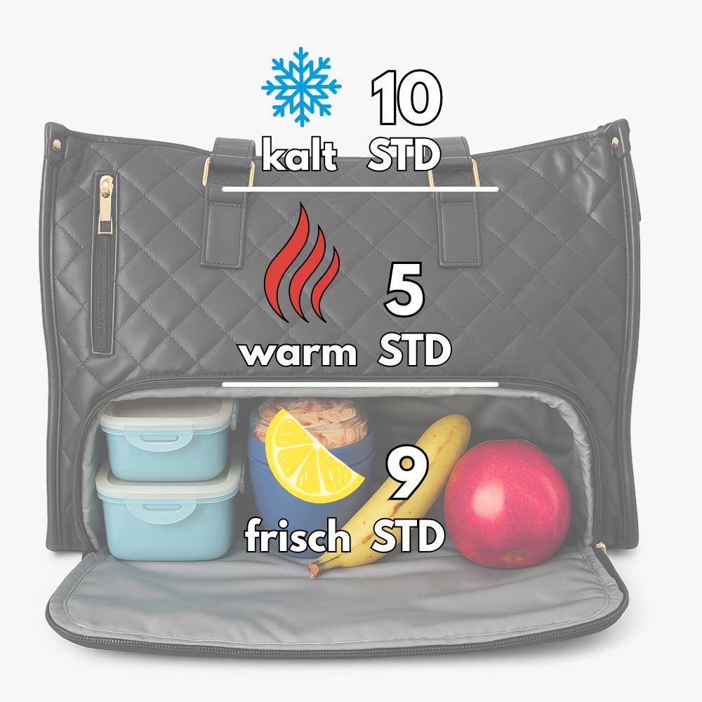 Die LuxeLunch ist mehr als nur eine Tasche – sie ist die perfekte Kombination aus Alltagstauglichkeit und Business-Eleganz. Ihr integriertes, isoliertes Lunchfach trennt Speisen sicher vom restlichen Tascheninhalt, schützt vor auslaufenden Flüssigkeiten und sorgt dafür, dass dein Essen frisch bleibt – egal ob warm oder kalt.