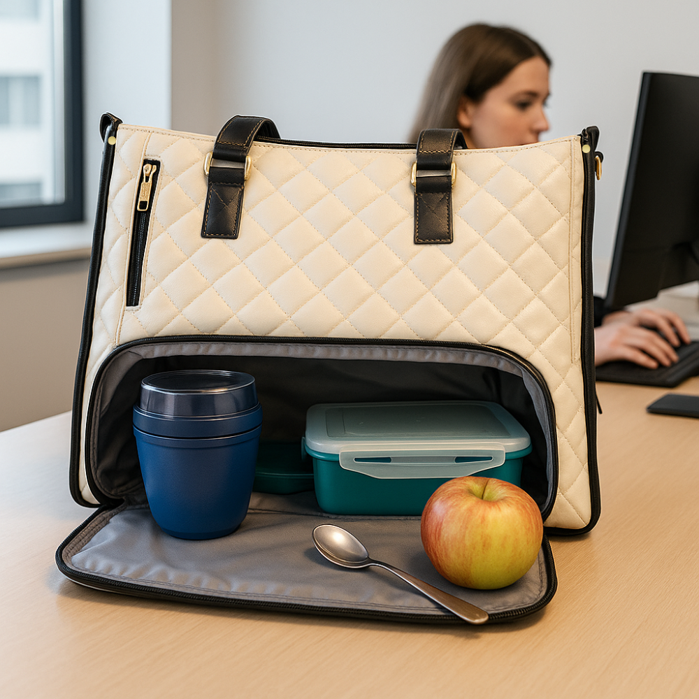Schluss mit auslaufenden Dosen und Chaos in der Tasche – LuxeLunch mit integriertem Lunchfach bringt endlich Ordnung in deinen Alltag.